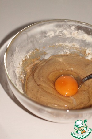 В сотейник положите мед и сахар и нагревайте до тех пор, пока сахар не растворится. У меня ушло 2 минутки. Выливайте горячую смесь в тесто и размешивайте.