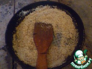 Пока подходит тесто, готовим начинку. Орехи измельчить в блендере с сахаром, высыпать на сухую сковороду и слегка обжарить.