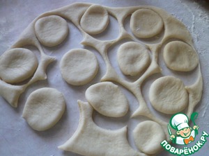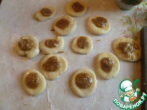 На серединку кружочков теста кладем по 1 ч. л. начинки.