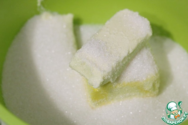 Масло или маргарин с помощью миксера взбить с сахаром.