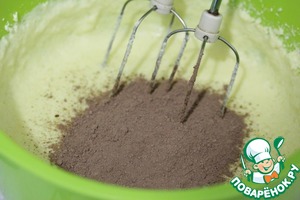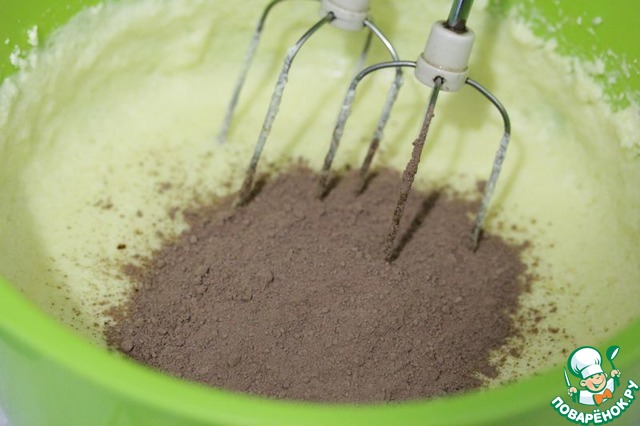 Добавить корицу и како-порошок, перемешать миксером на низкой скорости.