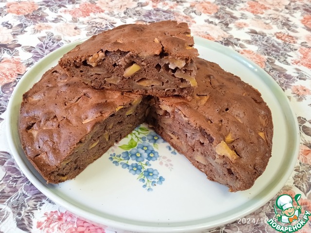Пирог получается большой и высокий. Можно уменьшить порцию и приготовить пирог в расчете на меньшее количество яиц: 3 яйца, 150 г сахара, 150 г маргарина, 1 ст. л. какао, 1 ч. л. корицы, 180 г муки, 3/4 ч. л. соды.