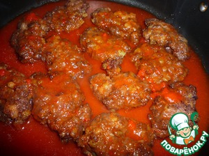 Смешать пасту в стакане воды, полить котлеты и отправить в духовку на 15-20 минут (200 град).