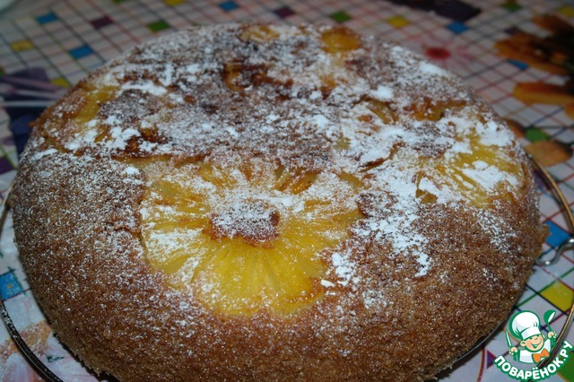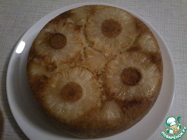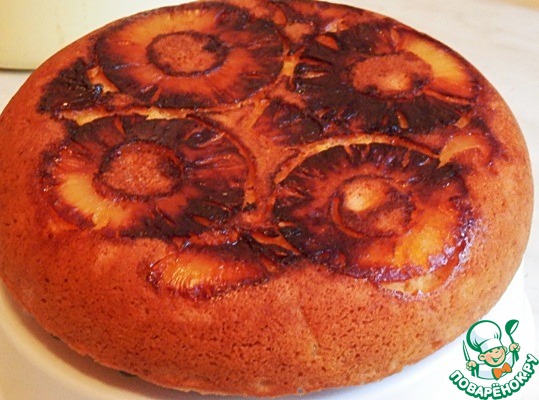 Выпекаем ананасовый пирог 65 минут в мультиварке в режиме "выпечка".