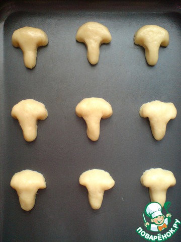 Тесто пластичное, и из него можно вылепить разные фигурки, например грибочки.