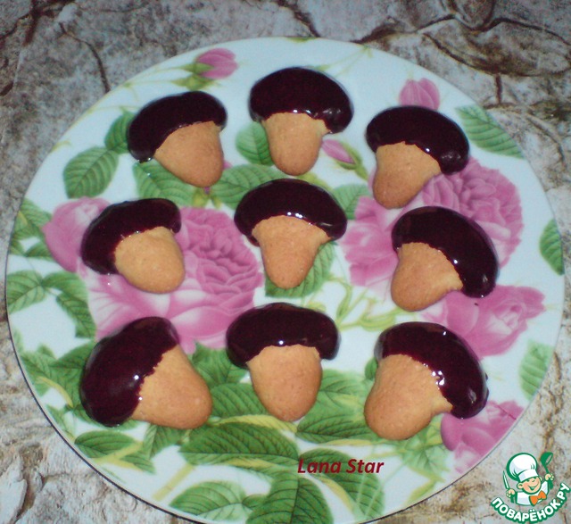 Шоколадную глазурь остудить, и обмакнуть печенье в виде грибочков шляпкой, поставить на холод для застывания глазури. Готово!