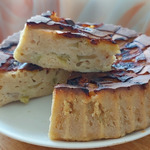 Можно поступить иначе... выливаем немного теста, на тесто выкладываем часть яблок, сверху аккуратно распределяем остальную часть теста и верх украшаем оставшимися яблоками. Я выбрала последний вариант.