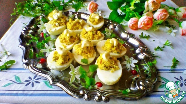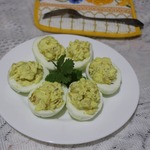 Просмотрела рецепты фаршированных яиц, такого не нашла. Этот рецепт экономный. Я пробовала много фаршированных яиц с разной начинкой, но этот с пикантной ноткой мне нравится больше всех, попробуйте!