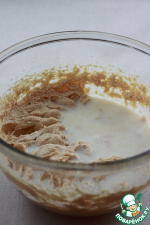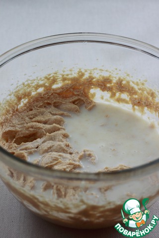 Влить молоко, аккуратно перемешать.
