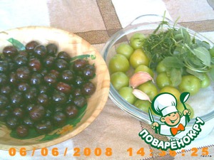 Нарезать алычу дольками, зелень, чеснок, соль, все хорошо перемешать. Через 30 минут можно подавать, к водке незаменимая закуска)))