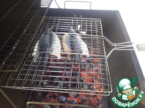 Скумбрию надрезаем по позвоночнику и укладываем в таком виде на решетку для гриля.