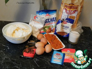 Ингредиенты для «Шоколадный торт с творожными шариками и курагой»: