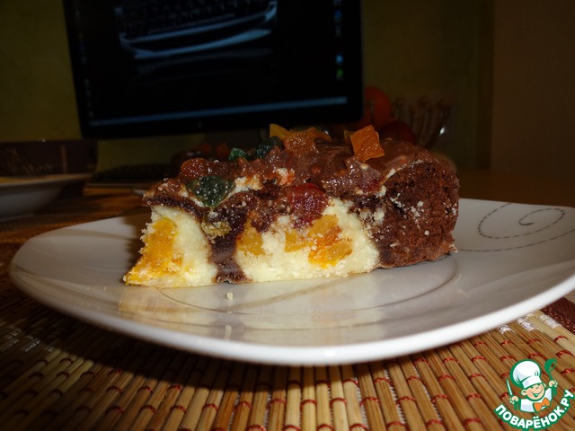Рецепт «Шоколадный торт с творожными шариками и курагой»:
