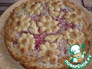 Остатки теста раскатываем и вырезаем любые симпатичные фигурки. У меня вариация на тему цветочков!) Ставим наш пирог в разогретую до 180 градусов духовку на 45-55 минут.