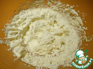 Сливочное масло комнатной температуры взбиваем миксером, затем порциями добавляем сахар, не переставая взбивать.