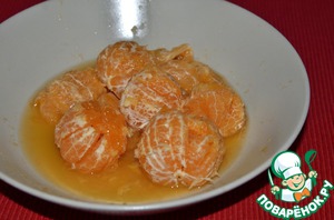 Отрезав верхушки мандаринов, аккуратно, при помощи ложечки извлечь дольки.
