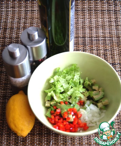 Hарезать мелким кубиком, сбрызнуть лимоном.