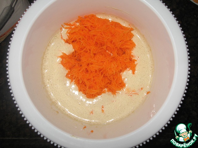 Для начала, надо почистить и натереть на мелкой терке сырую морковку. -