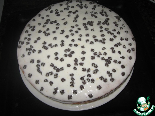 Перемазываем коржи кремом. Сверху украшаем торт по желанию (измельченными орехами, тертым шоколадом, или шоколадными капельками, цветной кокосовой стружкой и т. д...).