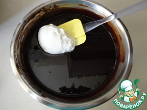 • Наиаккуратнейшим образом, не спеша, вводим постепенно сливки в теплую (примерно градусов 40) шоколадную массу.