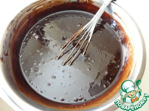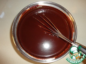 • Для мусса подогреваем 450мл молока, добавляем в него 900г шоколада и перемешиваем до полного растворения последнего.