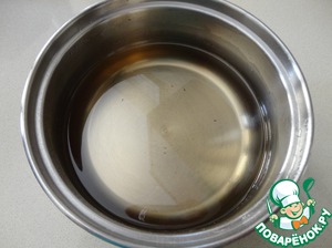 • Для сиропа в кастрюльку наливаем 150мл воды, добавляем 150г сахара и 50мл ликера. Кипятим 2 минуты, даем остыть.