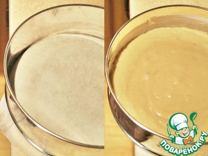 Форма для торта у меня 22 см. Дно застелить бумагой для запекания, стенки, при необходимости смазать маслом, перелить тесто для бисквита и запечь при 180 град до готовности (примерно 20 мин. но ориентируйтесь по вашей духовке), до сухой лучины.