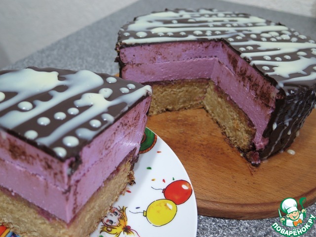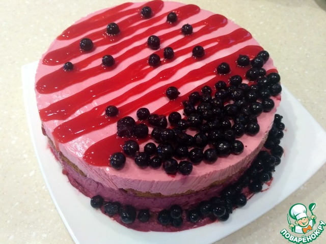 Через некоторое время вылить сверху смородиновую массу и снова на холод. Через пару часов торт застынет полностью. Форма данного диаметра будет заполнена, как раз, до краев. В принципе, если всё сделать аккуратно уже будет красиво!