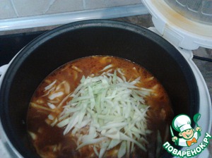 Добавляем воду, закрываем крышку и включаем программу "Суп", если такой нет, то "Тушение" и готовим 60 мин.