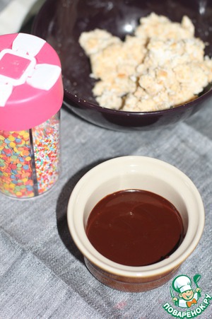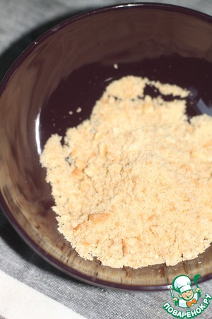 Первым делом, нужно измельчить юбилейное печенье в крошку. Я на пробу приготовила немного и, честно скажу, пожалела. Уж больно вкусно получилось.
