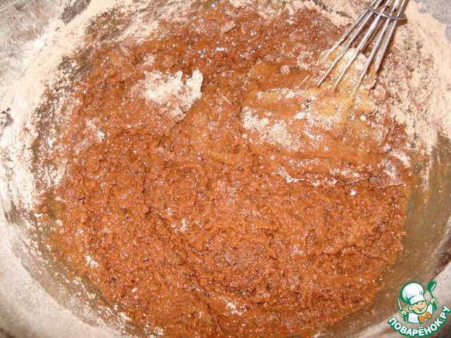 Добавьте кофе в тесто и венчиком размешайте. Тесто будет довольно жидким.