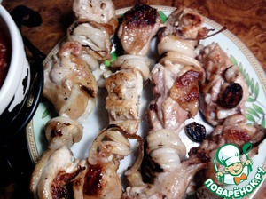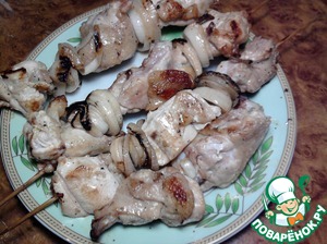 Итак, начнем. Так как у меня не было замаринованной свинины и шашлык я вообще делать сегодня не собиралась, а была замаринованная курица по-американски по рецепту многоуважаемого кулинара xsenia http://www.pova renok.ru/recipes/sho w/46727,/ и за что ей большущее СПАСИБО, то ее я и решила приготовить. Лук я замариновала в уксусе отдельно.