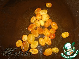 Обжариваем изюм до золотисто-вздутого состояния.