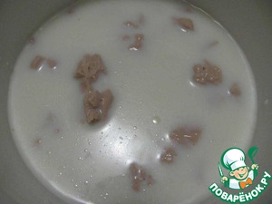2. Дрожжи раскрошить, распустить в теплом молоке и на 10 минут оставить.