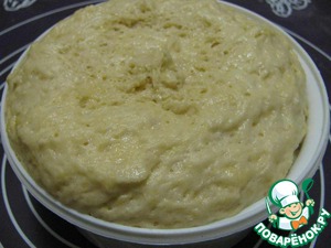 5. Дрожжи с молоком, масло, цедру и яйца соединить и перемешать с мукой. Замесить тесто. Можно миксером, а можно ложкой. Тесто выходит тягучим, но не жидким, держит форму. Накрыть салфеткой и поставить в теплое место на 1 час.