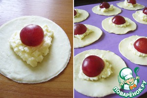 Вырезала круги и поместила творог с виноградом в центр круга.
