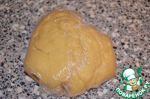 Тесто собираем в шар, заворачиваем в пленку и кладем минут на 40 в холодильник.