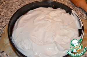 Убавляем нагрев в духовке до 160С и выпекаем торт до легкого зарумянивания безе. -