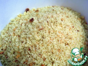 Размягченное при комнатной температуре масло взбить с сахарной пудрой (без фанатизма). Добавить какао (его можно дать и больше, чем предлагаю я, будет более шоколадно), миндальную крошку (или просто перемолотый миндаль) и сухое молоко. Все хорошо перемешать...