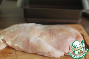 Для приготовления рулета из индейки нам понадобится добрый кусок филе индейки и продолговатая форма для запекания, у меня это форма для кекса.