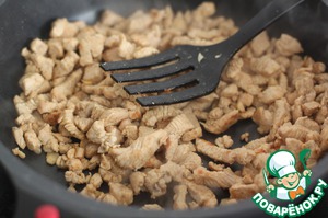 Оставшуюся индейку мелко порубим и обжарим на сливочном масле, добавив красный винный уксус, чеснок, соль и немного паприки.