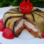 Блюдо террин получило свое имя благодаря одноименной прямоугольной огнеупорной форме с крышкой. Родом террины из Франции. Террины бывают мясные, рыбные, овощные, даже сладкие. Я предлагаю террин из баклажан с сыром. Вполне достойная закуска.