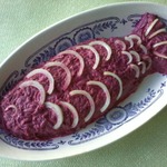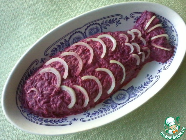 в рецепте лука не надо, там копченая рыбка даёт привкус свекле, а лук перебьёт, лучше сверху потом притрусить, и лук попадёт и копченый вкус не потеряется, хотя можно попробовать
