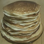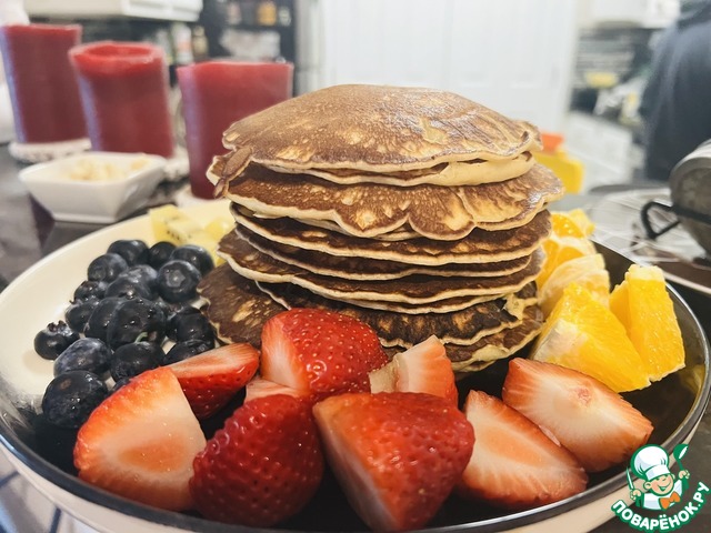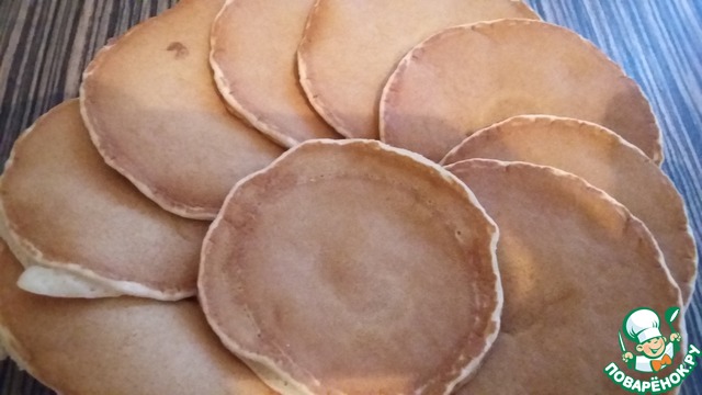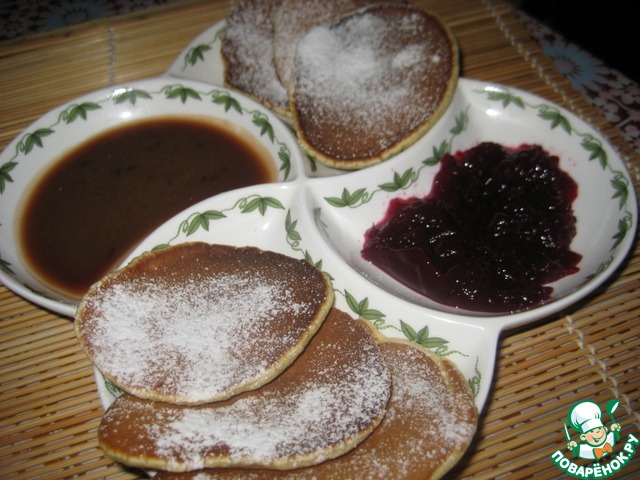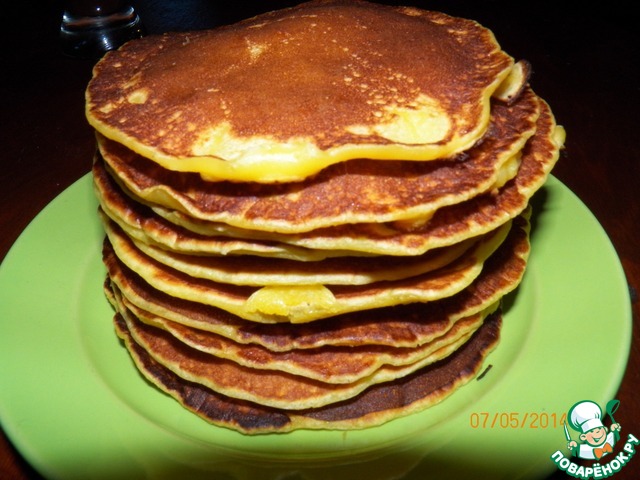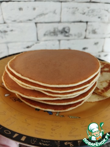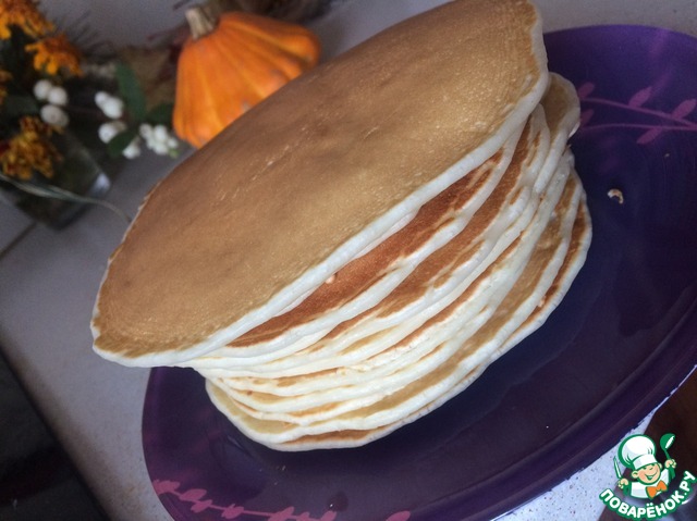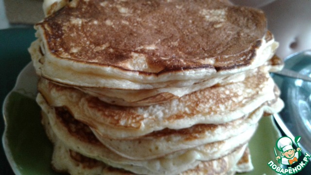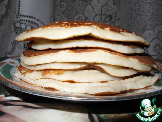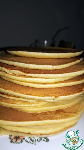 Давным-давно, насмотревшись различных американских фильмов и сериалов, искала я рецепт этих загадочных пышных оладушек, которые они, американцы, поглащают с кленовым сиропом... Но не знала их названия. Нашла... Название им - панкейки! Сколько рецептов я не находила, сколько я по ним не готовила, ну не получались они у меня даже близко похожими ни по вкусу, ни по виду... Но вот однажды, совсем отчаявшись я наткнулась в одном блоге девушки по имени Lapundrik на этот рецепт... меня сразу же привлеко название "Идеальные панкейки". Немного поразмыслив, я дала себе еще один шанс испробовать их... Уж больно вкусно она их описывала. И я не разочаровалась! Правда немного изменила количество ингредиентов.