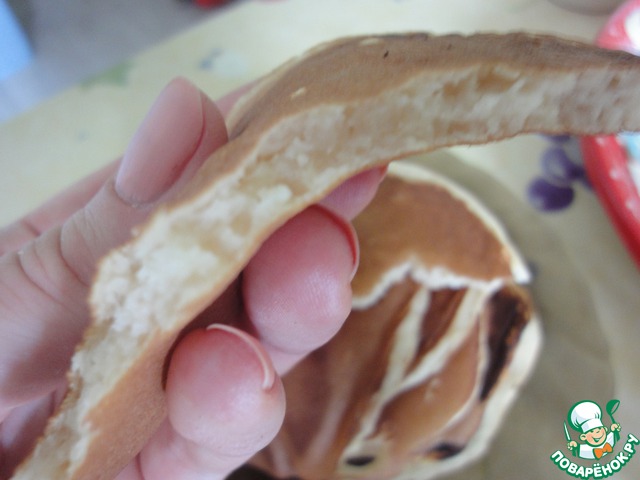Вот и всё! Панкейки получаются чудесные! В меру сладкие, очень мягкие и воздушные. На фотографии не очень-то получилось видно, но поверьте мне на слово! Самые вкусные панкейки! На самом деле, ИДЕАЛЬНЫЕ!
