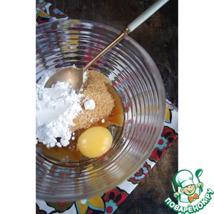 Итак, пока молоко нагревается, смешиваем яйцо, сахар (у меня коричневый "Демерара", но подойдёт любой), крахмал и заменитель ванили, если таковой используется.