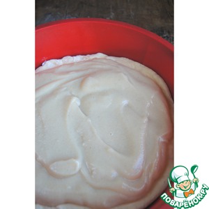 Переносим в форму, накрываем крем и подворачиваем под нижний пласт теста.