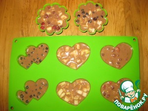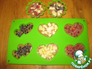 4. В каждую формочку добавляем ягоды или яблоки. Можно изюм, орехи по желанию.