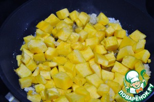 Жарю тыкву в сахаре, сейчас зима, и тыква долго хранилась. A значит, может быть не такая сочная, добавляйте по столовой ложке воды.