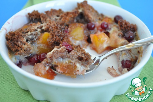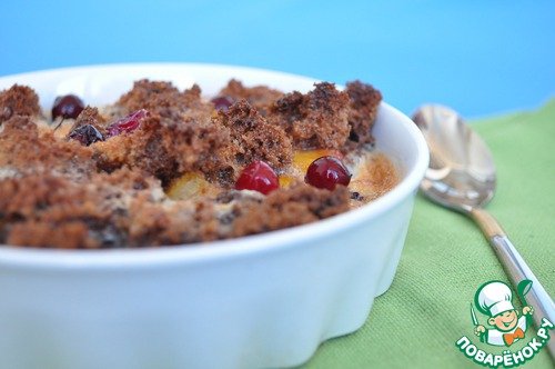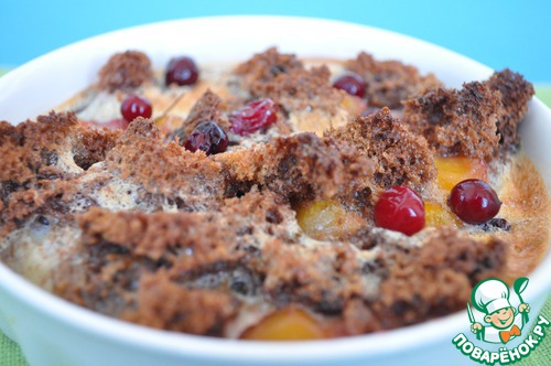 У меня остались кусочки бисквита после приготовления пирожных. Я вырезала формочками кружочки, а обрезки остались. На завтрак я приготовила из них гратен. Кусочки были от шоколадного и белого бисквитов.
